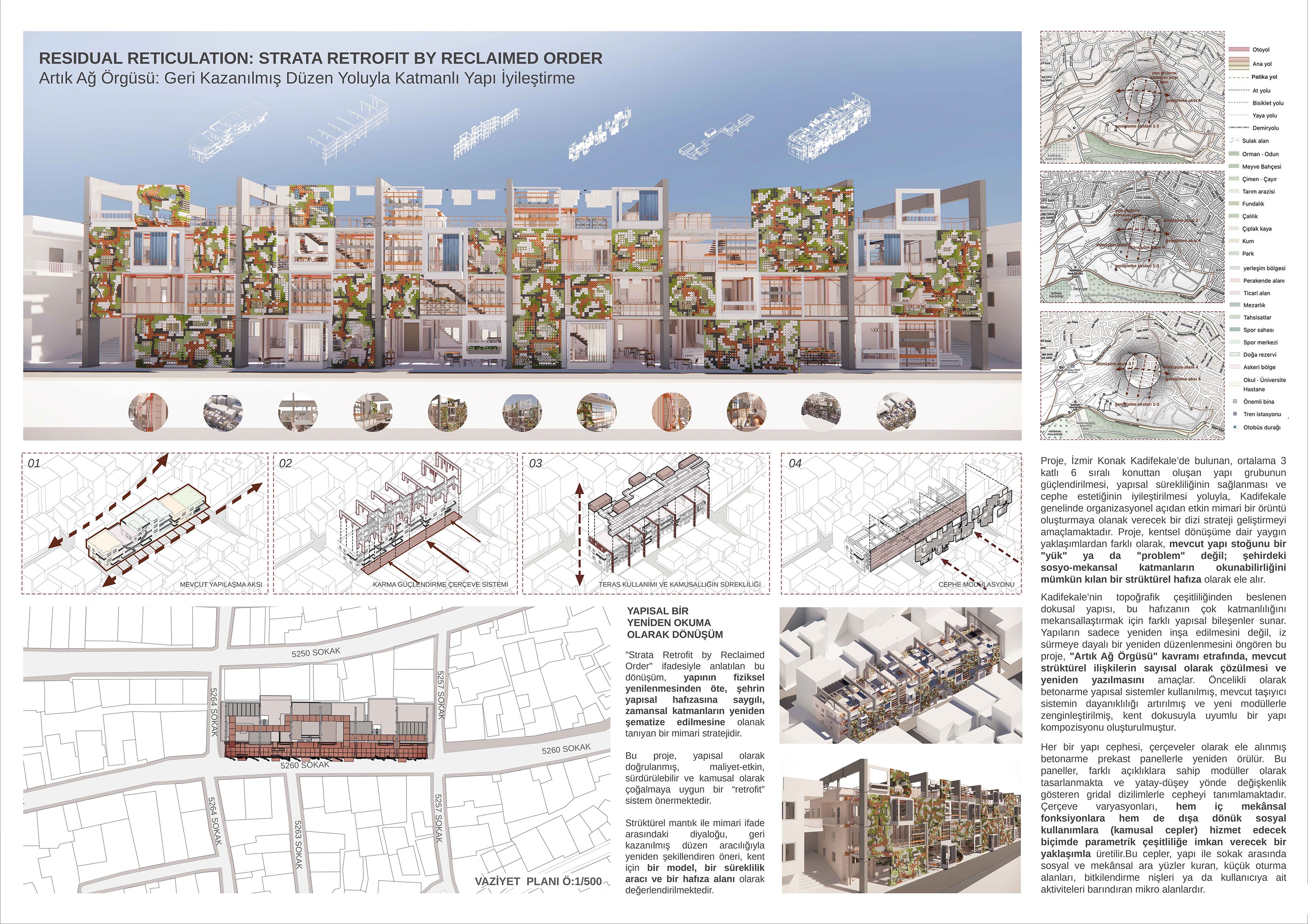 Ultimately, the project envisions a culturally grounded, socially durable, and ecologically attuned transformation of Kadifekale’s informal apartment fabric. It demonstrates that renewal in marginalized urban hillsides can be achieved not through removal, but through patient stitching, re-territorialization, and architectural empathy.