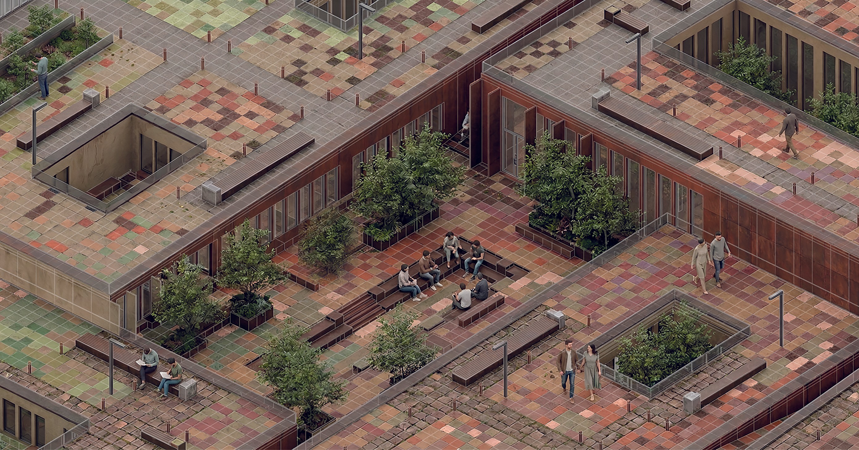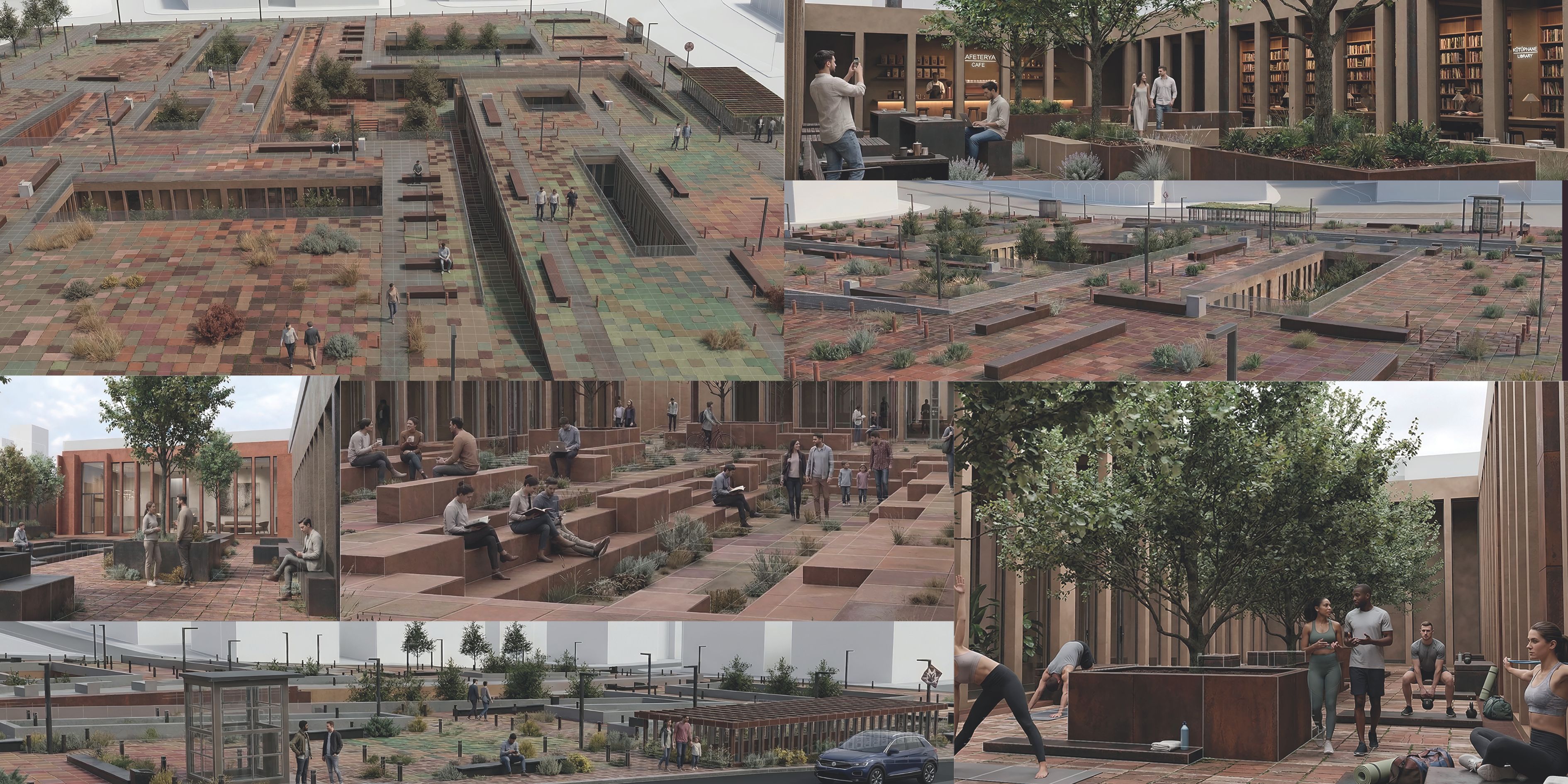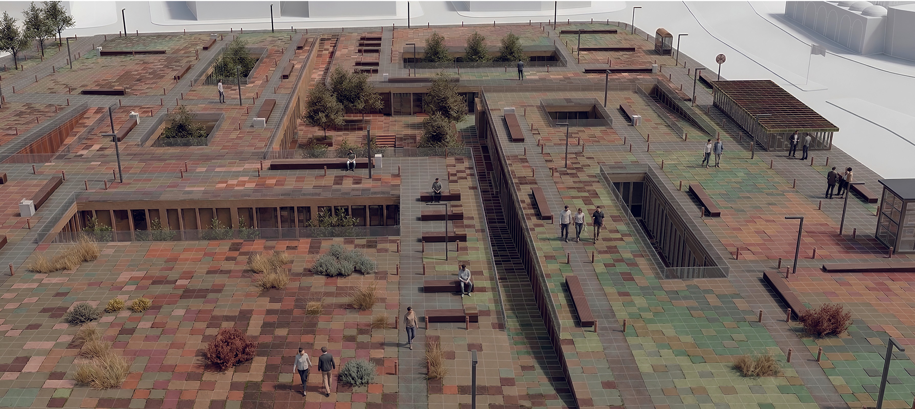 The project deliberately avoids the creation of a singular, fixed focal point. Instead, it introduces a fluid and multi-centered spatial organization that supports dynamic patterns of movement and interaction. This system enhances the continuity of urban flows while generating opportunities for encounter at different scales. The site is thus reimagined not as a static public ground, but as an active surface shaped by intersecting trajectories.