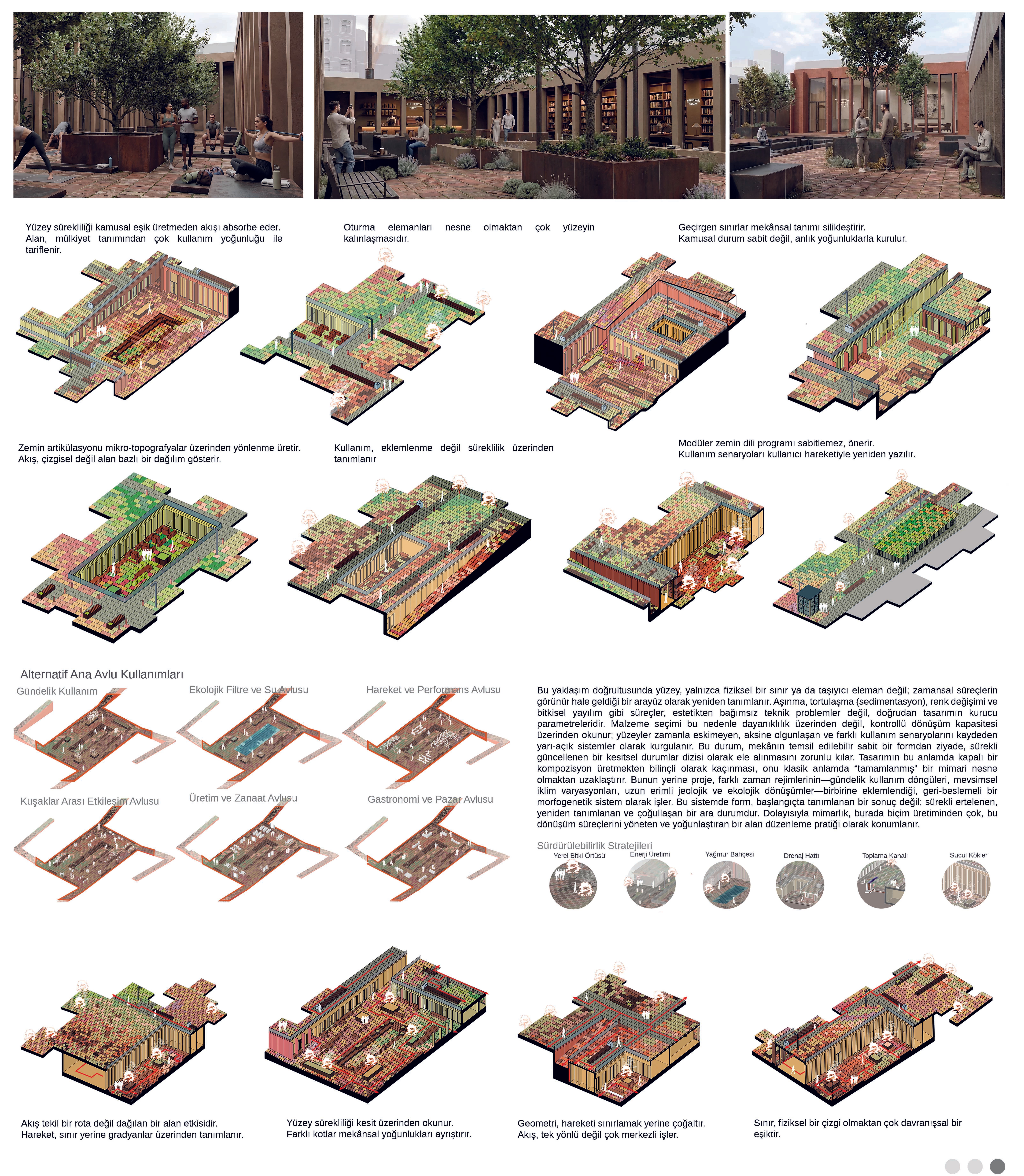 Ultimately, the project positions the Setbaşı–Yeşil–Emirsultan Axis as a regenerative cultural ecology: a dynamic interface where heritage is not merely preserved but actively reactivated through environmental restoration, socio-spatial porosity, and topographic resonance. The proposal imagines the axis as a future-oriented civic landscape that deepens its historical identity precisely by enabling new forms of urban inhabitation, ritual continuity, and ecological intelligence.