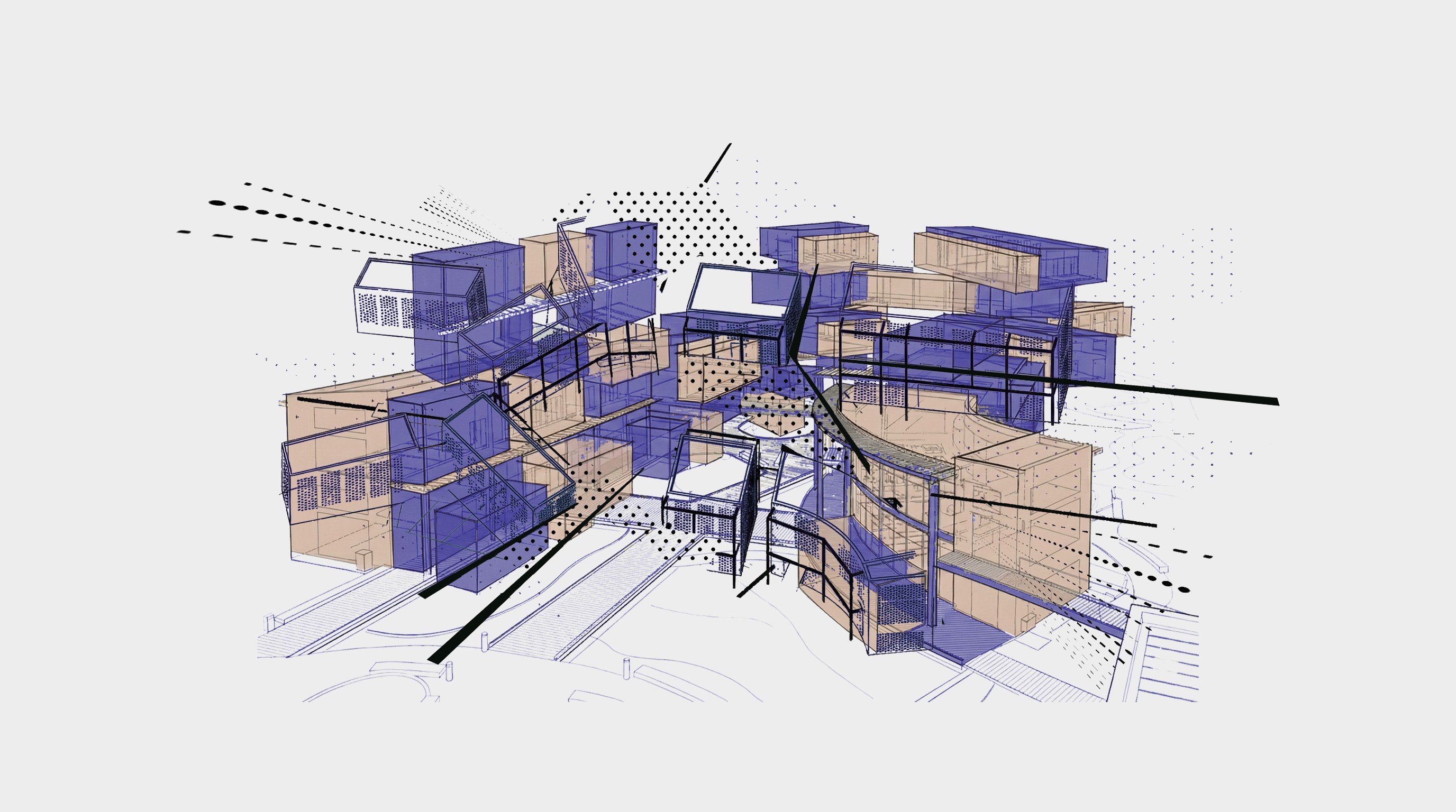 Programmatically, the extension accommodates interdisciplinary research studios, graduate learning environments, shared academic facilities, and informal spaces for encounter and exchange. The spatial organization avoids rigid functional zoning, recognizing that contemporary academic culture is defined by overlap, proximity, and incidental interaction. Circulation is therefore conceived as an active academic space, where movement becomes an opportunity for visual connection, intellectual exchange, and collective presence.