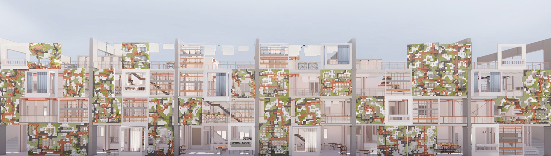 The design process began with a careful study of site conditions. Dense woodland encloses the western edge, while open meadows stretch toward the east. In response, the building adopts a long, narrow footprint aligned east to west — allowing for optimal daylighting and soft transitions between interior zones. Spaces are organized sequentially: the north-facing studio receives cool, even light ideal for painting, while the south-facing living space opens to a wooden terrace that catches afternoon sun and extends the interior into the surrounding field. Daily life follows the movement of light — from the quiet east-facing bedroom at sunrise to the golden shadows cast across the workspace at dusk.